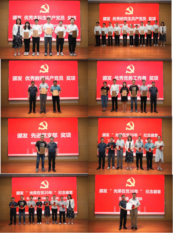 优秀共产党员、优秀党务工作者和先进党支部的决定》,随后,晁小荣、闫娜同志分别为获得“先进党支部”“优秀共产党员”“优秀党务工作者”的集体和个人进行颁奖;接着,樊文迪同志宣读了《“光荣在党20年”“光荣在党30年”纪念徽章获得者名单》,随后,晁小荣、闫娜同志分别为纪念徽章获得者颁发了纪念奖章。