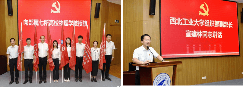 接着,举行了授旗仪式,西北工业大学组织部副部长宣建林分别向部属七所高校物理赌博网站