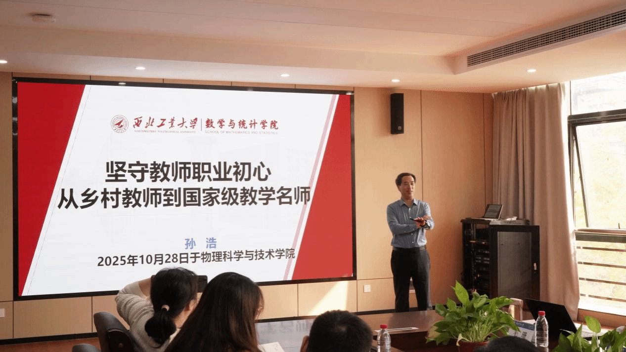 会上,晁小荣首先简要介绍了孙浩教授的有关情况,随后孙教授以《坚守教师职业初心,从乡村教师到国家级教学名师》为主题,围绕“弘扬教育家精神,服务教育强国建设”“争做新时代‘大先生’”“以德立身、以德立学、以德施教”“课程育人、科研育人和实践育人”等维度作系统阐述。他结合自身经历,深刻剖析了部分典型案例,生动阐释了教育家精神,刻画了“心系家国、敢为人先、深耕课堂、科研育人”的教师形象,同时激励广大教师以德立身、潜心教学,践行新时代“大先生”的光荣使命。