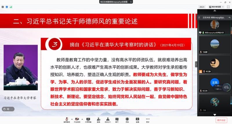 关于开展师德专题教育的部署安排,并组织大家认真学习了习近平总书记关于师德师风的重要论述。