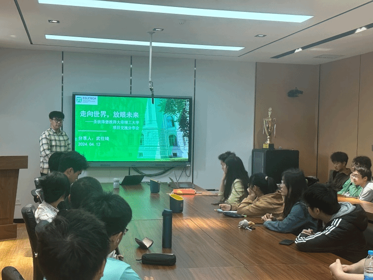 邀请了两位优秀的本科生做朋辈分享。袁佩琦同学就出国学习的经历,向大家介绍了自己在澳大利亚的学习经验和心得,分享了在异国他乡的收获和感悟,建议大家提前规划学业生涯,培养自己的国际视野。武仕琦同学结合在俄罗斯圣彼得堡彼得大帝理工大学的学习经历,为大家讲解了出国留学的奇闻趣事,鼓励大家要走出自己的舒适圈,科学规划和选择适合自己的发展方向,提升锻炼自我的能力。