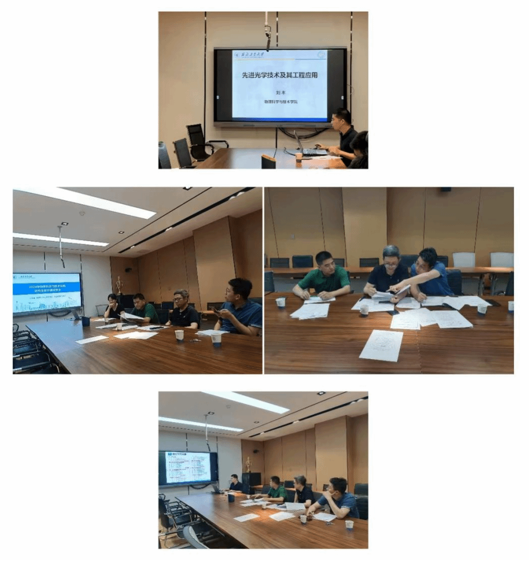 研究生督导兼光电信息科学与工程系主任杨德兴教授、应用物理系主任金克新教授及光电信息科学与工程系副主任李鹏教授3位专家担任评审专家,2位研究生新开课教师进行课程试讲。会议由副院长尹剑波主持。