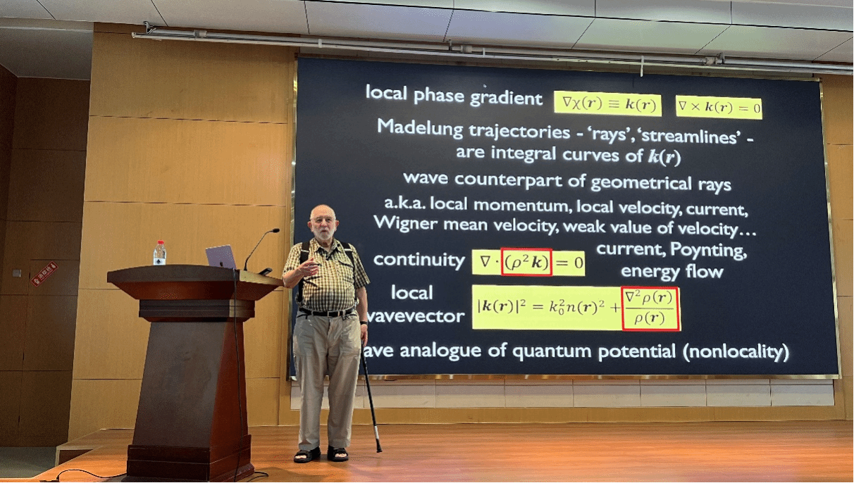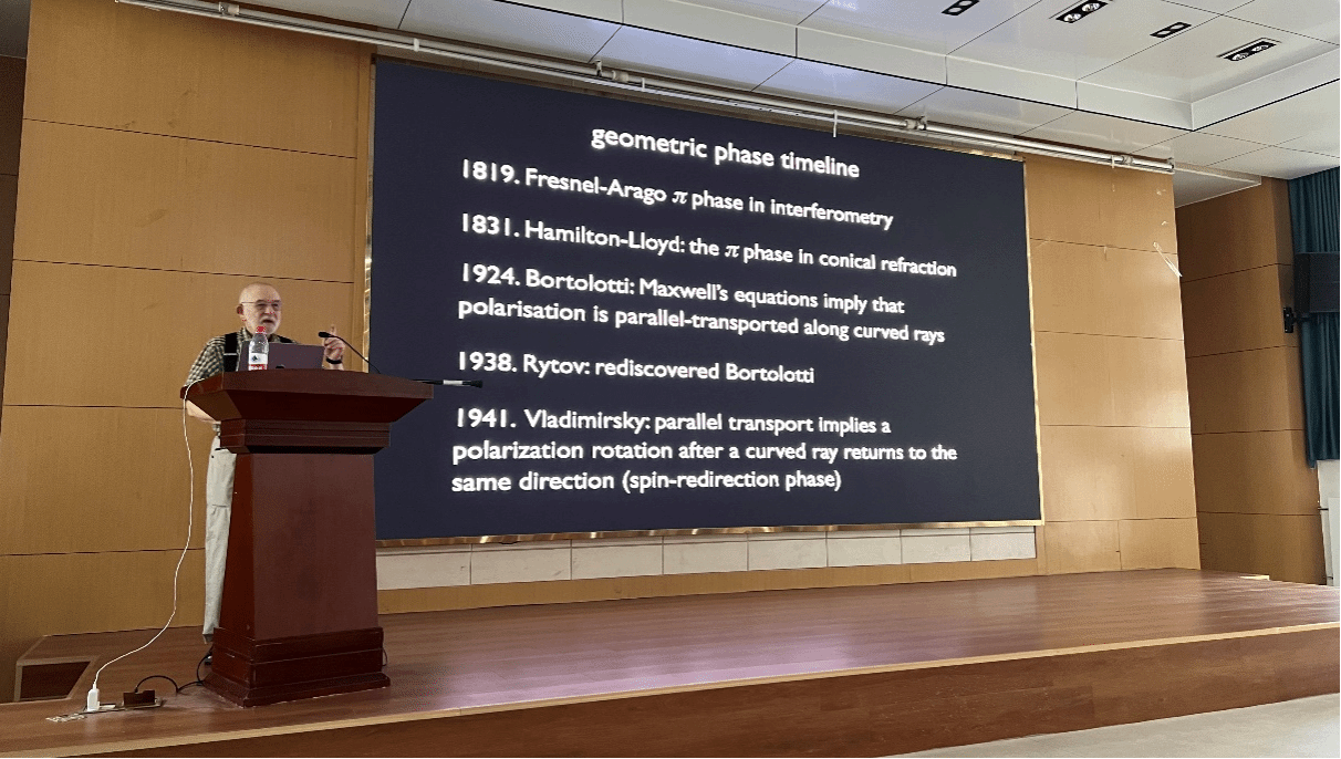 9月9日和9月11日上午,Berry教授分别以“Geometric phases old and new”和“Quantum trajectories, quantum potential, superoscillations: Madelung, de Broglie, Newton”为题作了两场赌博网站交流,向大家介绍了几何相位两个世纪以来的发展史和量子轨迹、量子势、超振荡中的相位奇点、相位梯度、能流等数学和物理问题。9月11日晚,Berry教授与赌博网站