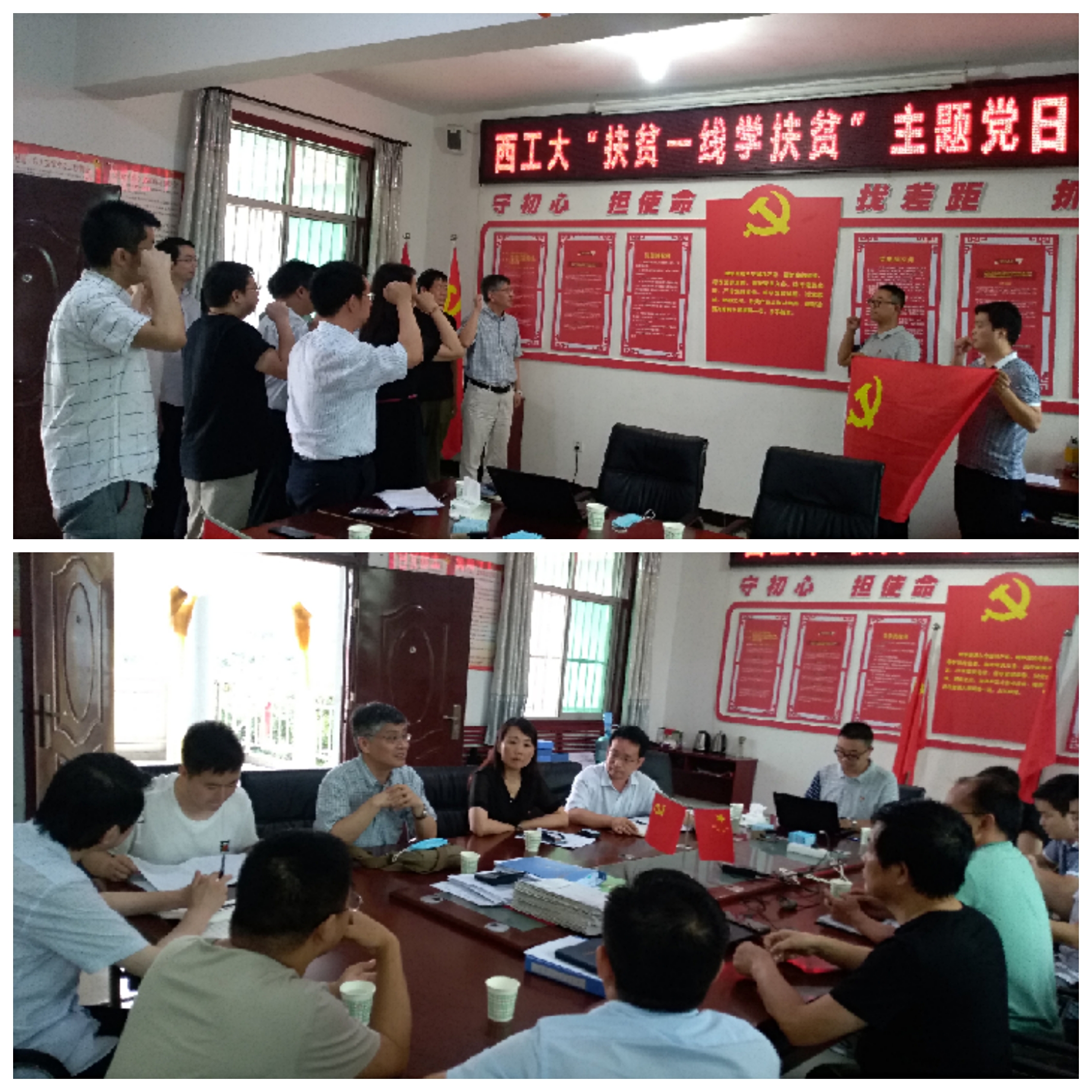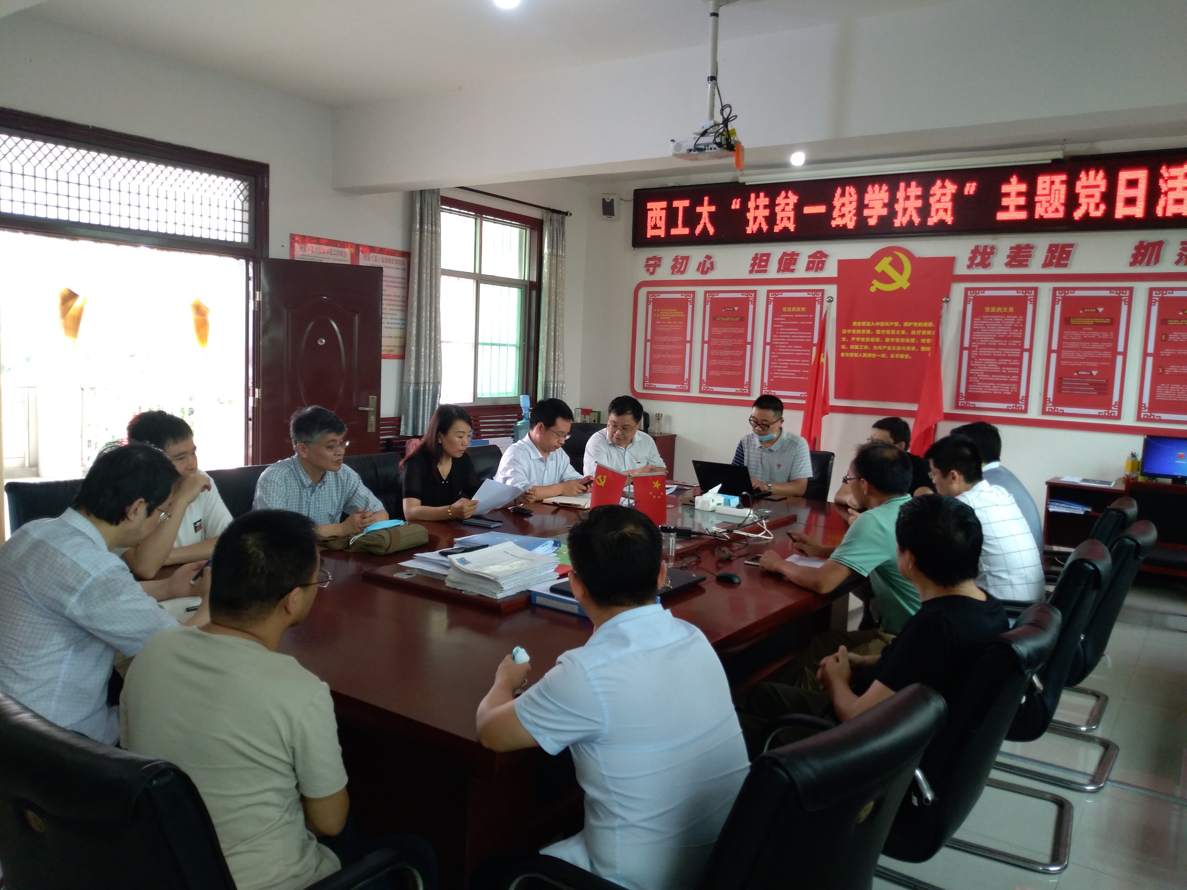 党委领导班子带领部分教师党支部书记、院办党员十余人赴鄠邑区余下街道灵山寺村开展主题为“扶贫一线学扶贫”的主题党日活动。西安市科技局派驻鄠邑区余下街道灵山寺村驻村工作队队长仇寅虎、西安市优秀驻村第一书记关盛元及相关工作人员参加会议。会议由物理赌博网站