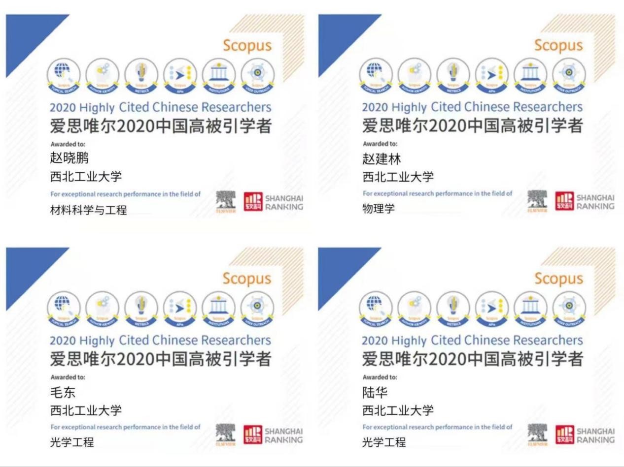 4人上榜。赵晓鹏教授入选材料科学与工程学科中国高被引学者,赵建林教授入选物理学科中国高被引学者,毛东教授、陆华副教授入选光学工程学科中国高被引学者。
