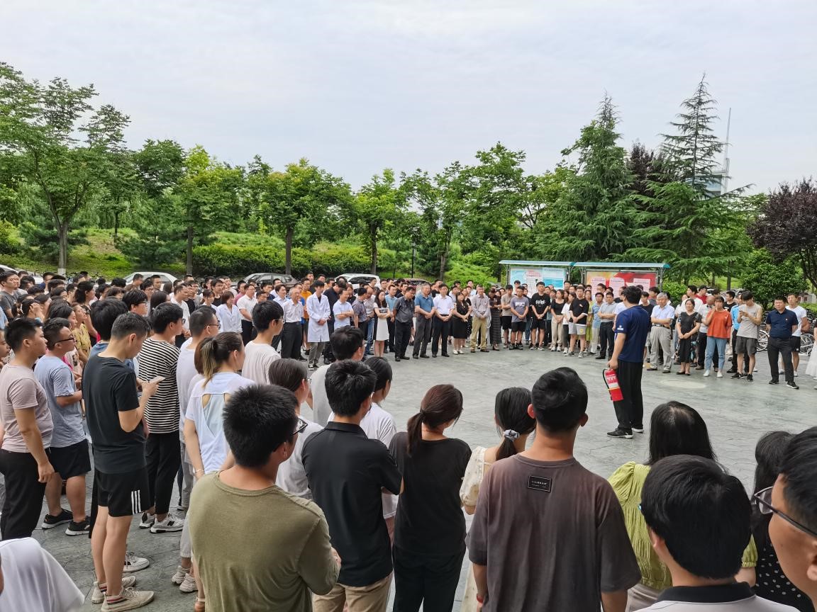 组织消防疏散演练活动。10点25分,随着消防报警声的响起,各楼层指挥人员迅速到班到岗,沉着冷静地指挥师生用湿毛巾或口罩捂住口、鼻,尽量放低身体,紧急撤离教学楼,安全、快速、有序地疏散到安全空地。整个演习用时4分25秒,取得圆满成功。
