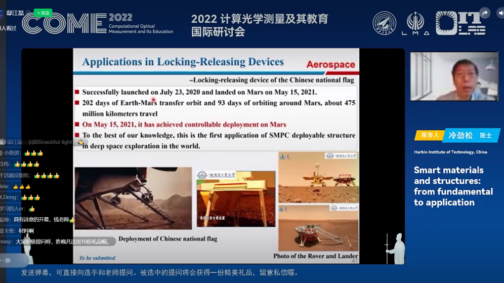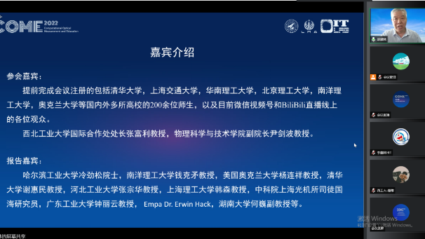 主办的2022计算光学测量及其教育国际研讨会(COME 2022)于2022年6月24-25日顺利召开。会议聚焦前沿光学研究与研究生教育的深度融合,涉及研究领域包括光学测量、计算光学、光学测试、实验力学、三维成像、光学仪器、人工智能、教育教学等,由西北工业大学赵建林教授,广东工业大学邸江磊教授和新加坡南洋理工大学钱克矛教授共同担任主席,邀请了本领域的八位国内外知名专家和学者分享学术成果和经验。由于疫情影响,此次会议采用“线上召开+网络同步直播”的模式。