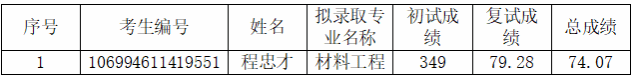 考生朱定强,考生编号106994611212756,主动自愿放弃赌博网站-博彩网站排名 材料工程的拟录取资格,经赌博网站 研究生招生工作小组审核通过,现根据成绩依次候补录名单公示如下: