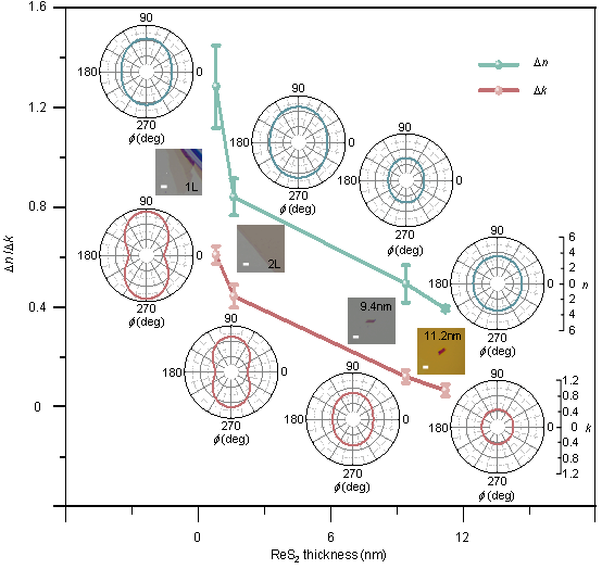 不同厚度ReS2样品面内光学各向异性测量结果